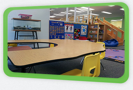 Our preschool room begins at age 4 and goes until the child enters kindergarten.
